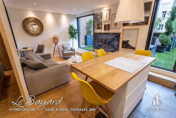 Je suis heureux de vous accueillir dans mon appartement à seulement 200 mètres de la gare appartement entièrement refait à neuf avec sa grande terrasse de 28 m2. Entièrement équipé, draps, serviettes, machine à café, micro ondes, grille pain, bouilloire, lave vaisselles, climatisation, four, une machine à laver ainsi que tout le nécessaire de cuisine. Il dispose aussi d'une tv cadre de 165 cm. Tout les commerces à proximité directe !